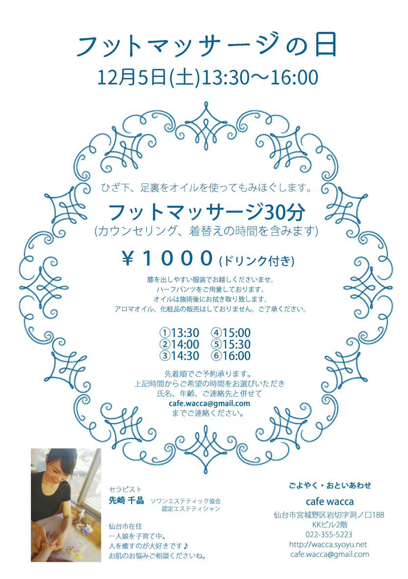 12/5(sat)フットマッサージの日 ご予約受付中!