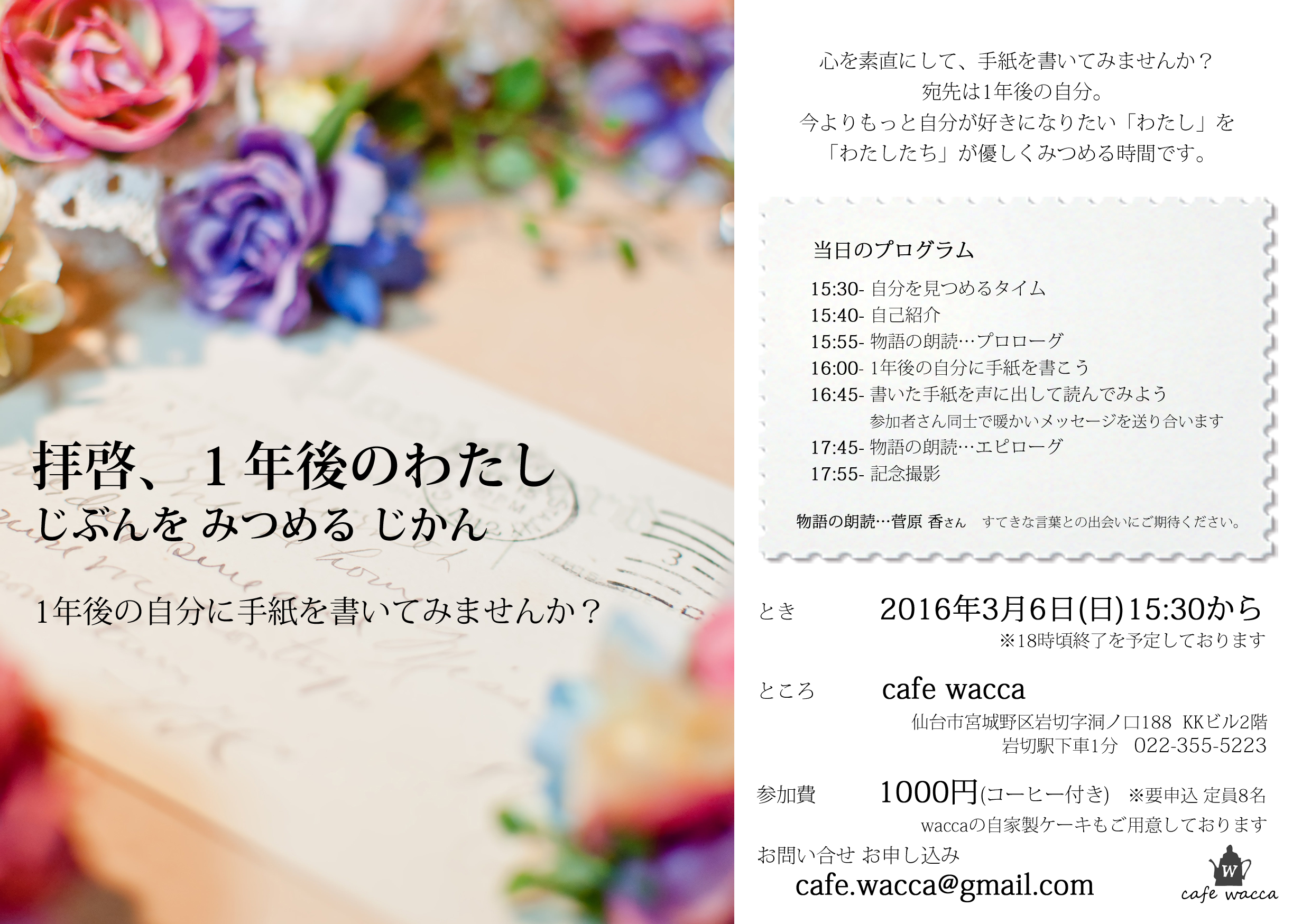 いよいよ今週の日曜日、1年後の自分にお手紙を書くイベントがwaccaであります。
