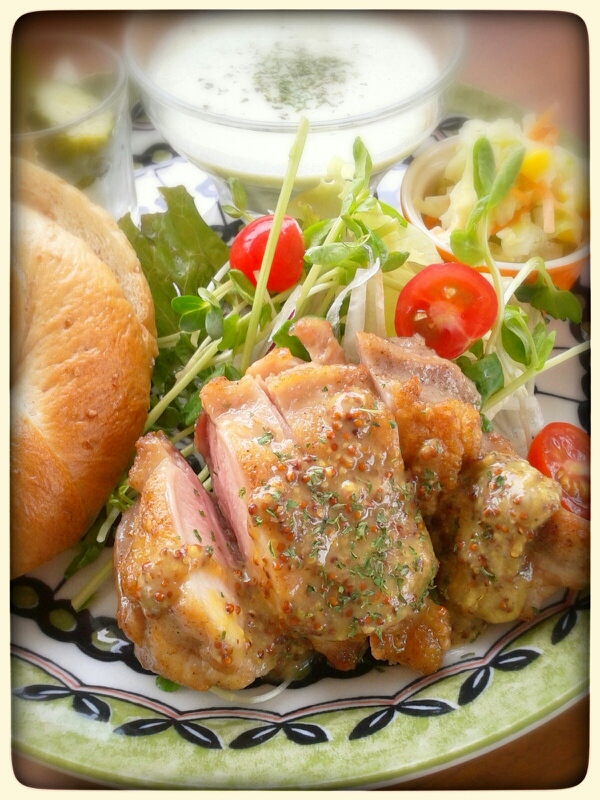 庭で育ったトマトやキュウリがランチのなかでひっそりと美味しく登場します。
