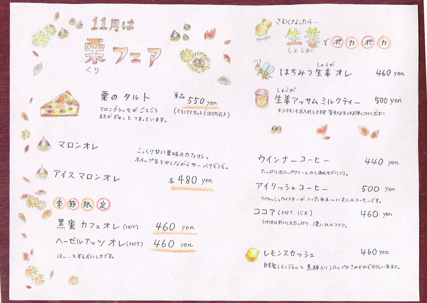 11月のフェアは栗です。