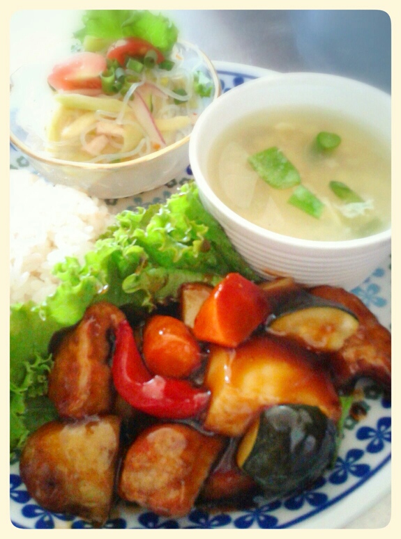 豚肉と厚揚げと野菜の黒酢あんかけ