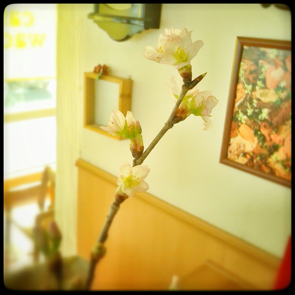 お花やさんで見つけた桜。写真はすこし前のものですが、いまは満開になっています!