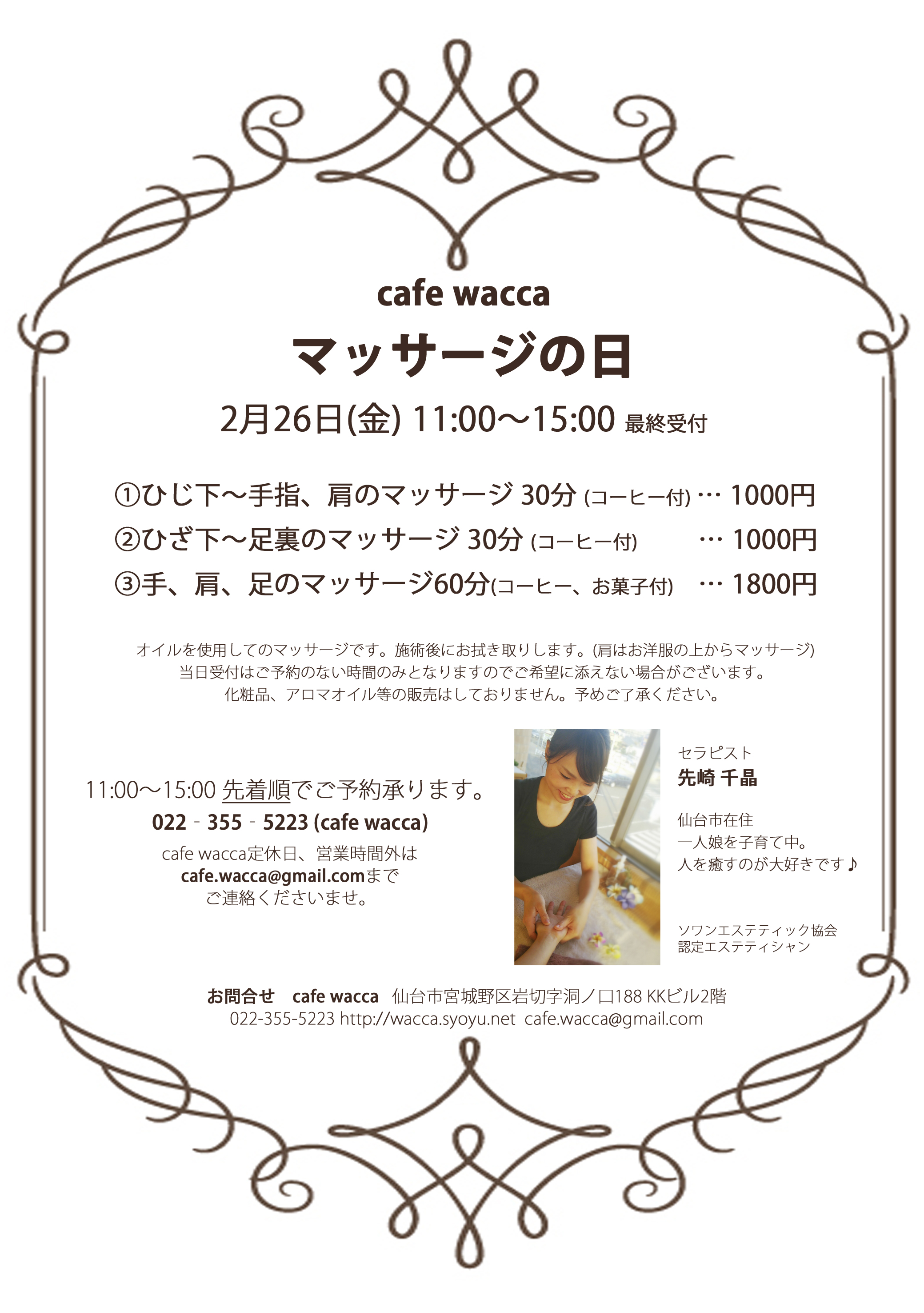 1月26日(火)は前回の記事でもお知らせしましたが、【マッサージ